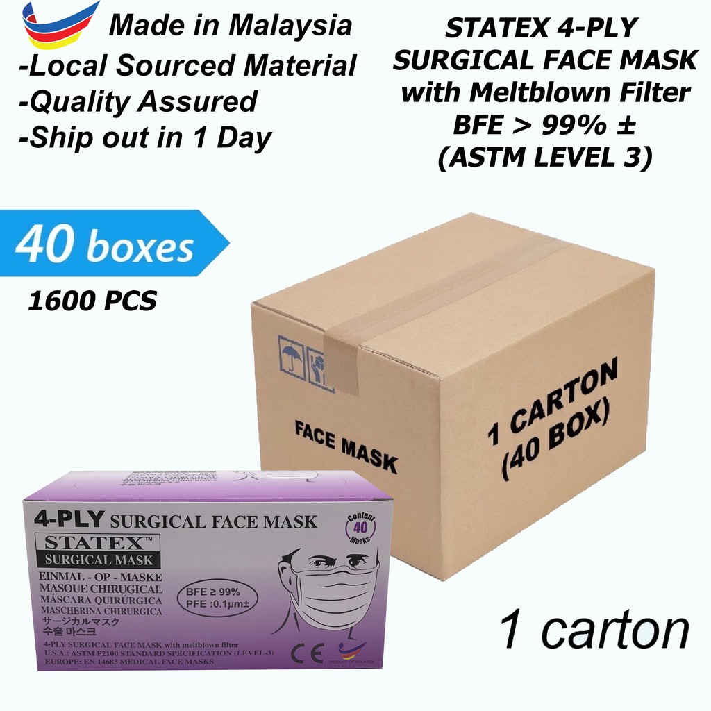 Statex 4 Ply 1 Carton 40 Box Made In Malaysia Surgical Face Mask Disposable Non Woven Mouth Filter Covid 19 Corona Virus Shopee Malaysia