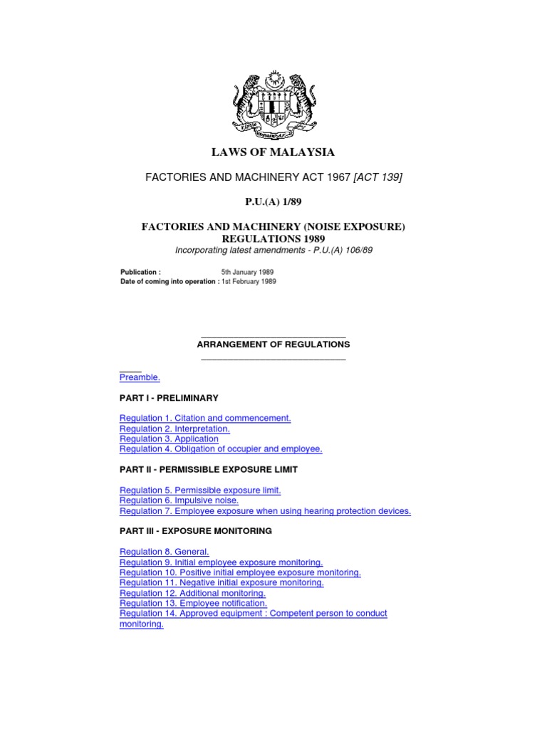 Https Www Dosh Gov My Index Php Regulation Regulations Under Factories And Machinery Act 1967 Act 139 507 03 Factories And Machinery Noise Exposure Regulations 1989 File