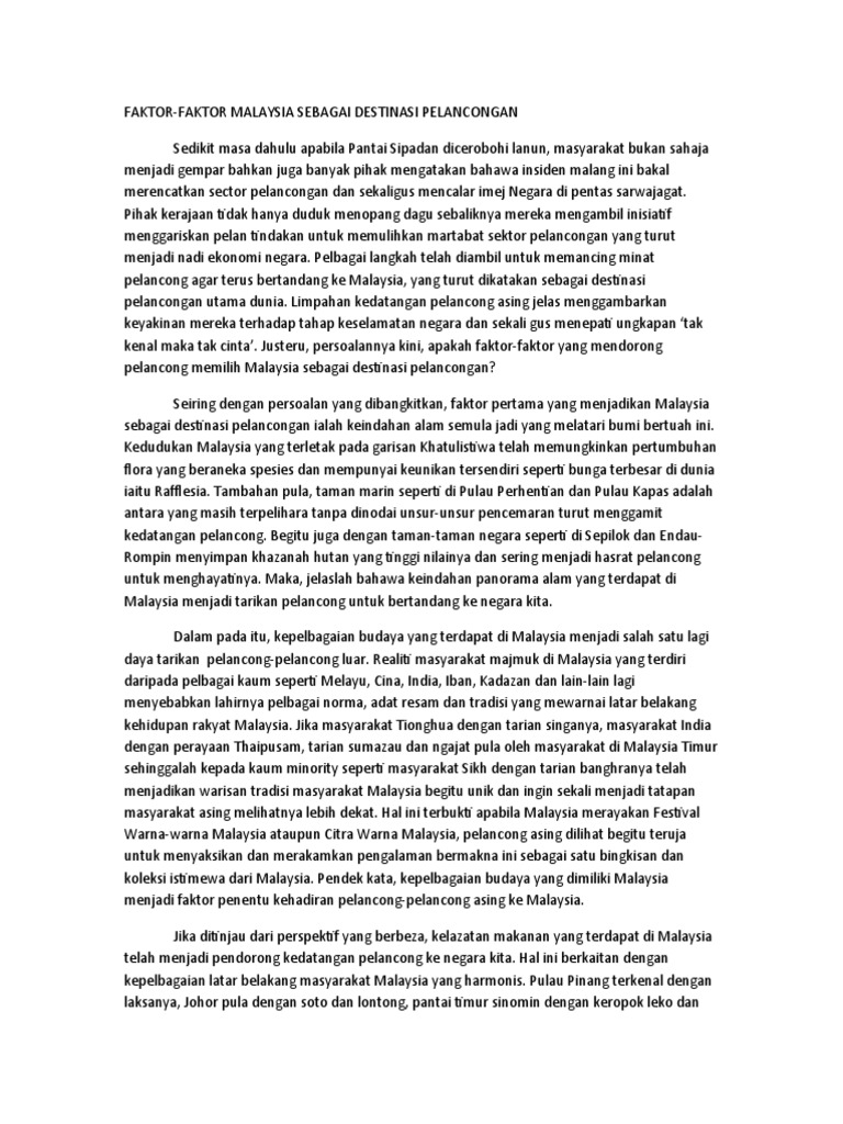 Faktor Tarikan Pelancong Ke Malaysia Karangan Spm