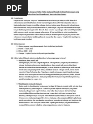 Pdf Faktor Negara Malaysia Dipilih Sebagai Destinasi Pelancongan Pdf Nurul Hamizah Jafpri Academia Edu