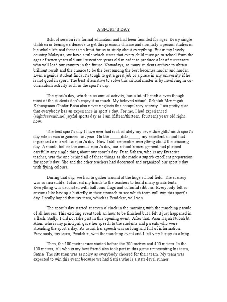 Pmr Essay Sample Entitled A School Sport Day