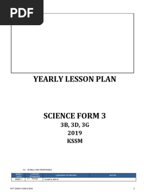 Yearly Lesson Pl 2019 01 18 Yearly Lesson Plan Science Form 3 2019 Kssm Dlp Smk Perempuan