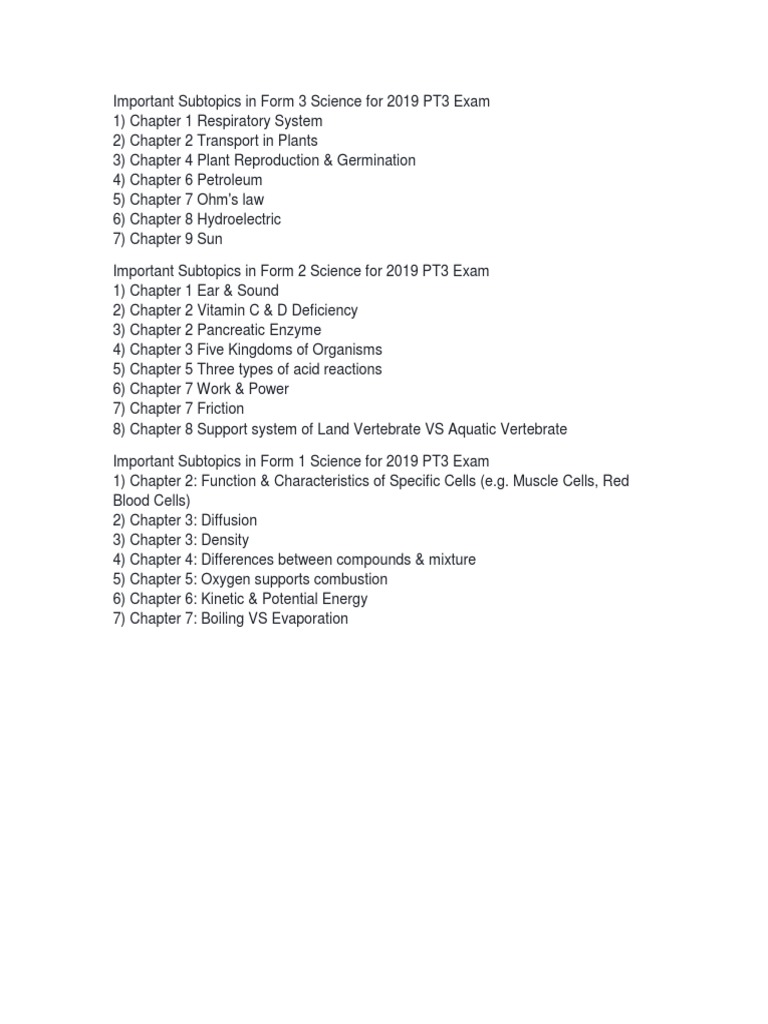 Important Subtopics In Form 3 Science For 2019 Pt3 Exam