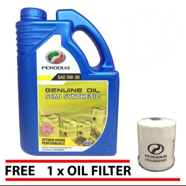 Perodua Semi Synthetic Engine Oil Sae 5w 30 4l Foc Perodua Oil Filter Foc Myvi 1 3 Alza Air Filter Lazada