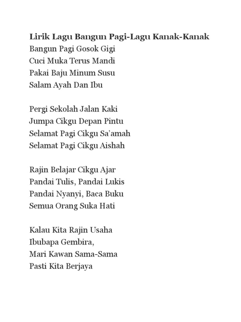 Doc Lirik Lagu Bangun Pagi Lagu Kanak Kanak Muhd Naim Academia Edu