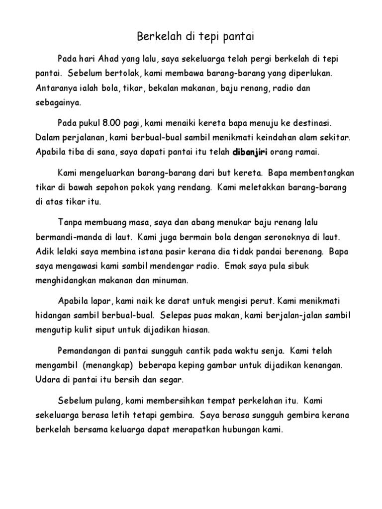 Sudut Bm Cikgu Tan Contoh Karangan 10 Berkelah Di Pantai