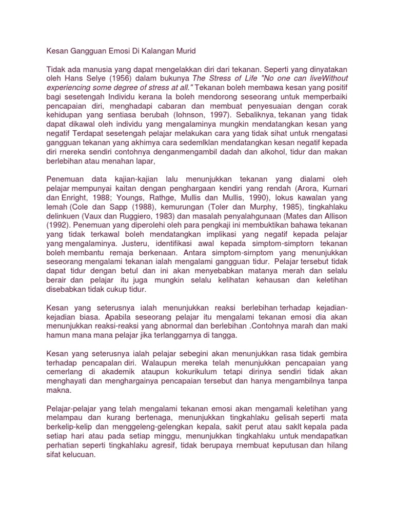Gangguan Emosi Dalam Kalangan Murid Murid Sekolah