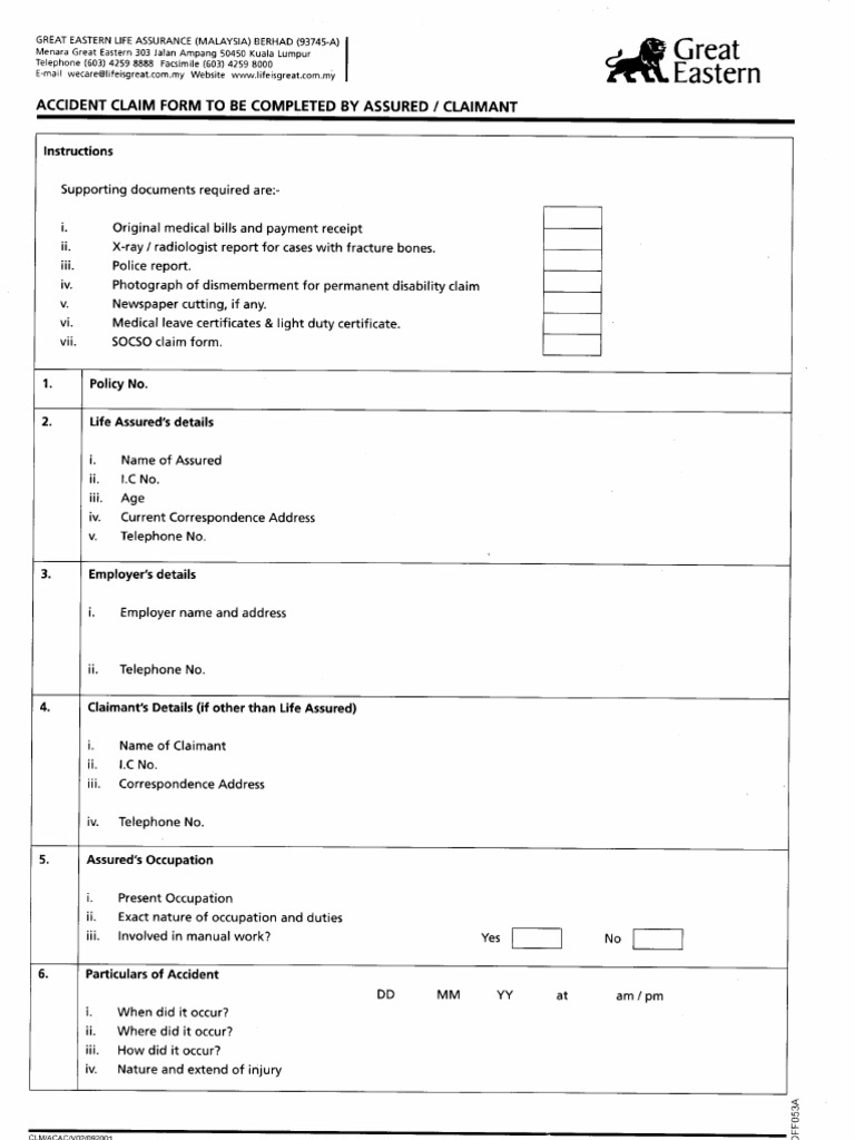Personal Accident Claim Form At Great Eastern Life Life Is