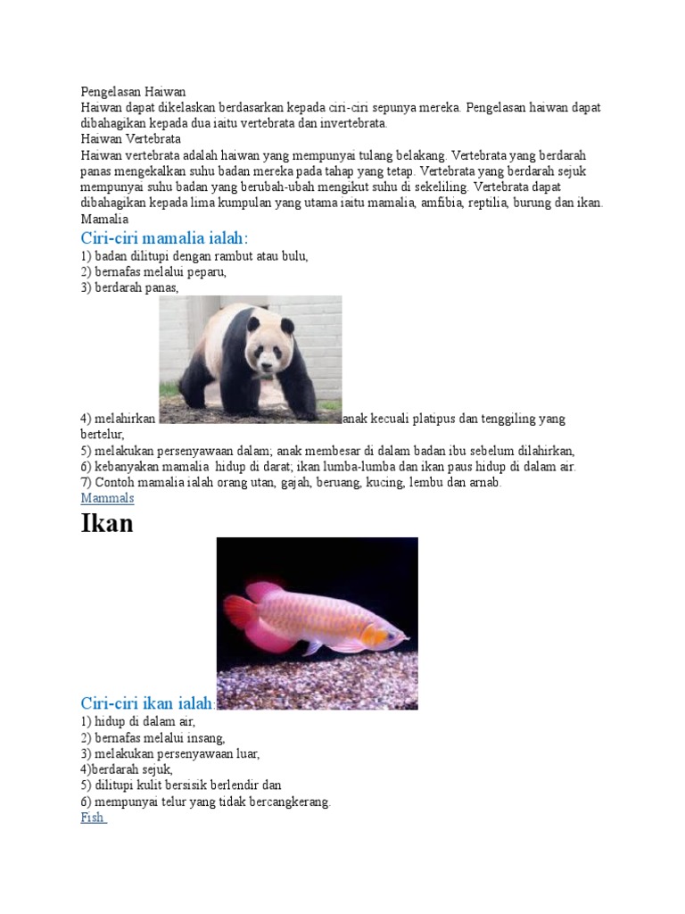 Haiwan Vertebrata Mamalia Burung Reptilia Ikan Amfibia