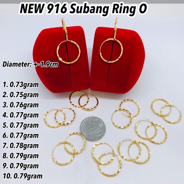 Emas 916 Tulen Subang Ring Bulat Murah Offer Shopee Malaysia