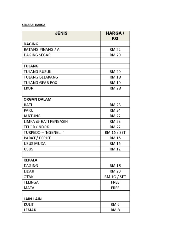 Senarai Harga Daging Tempatan Harga Penternak Pembekal Kambing Lembu Serta Susu Asli Facebook